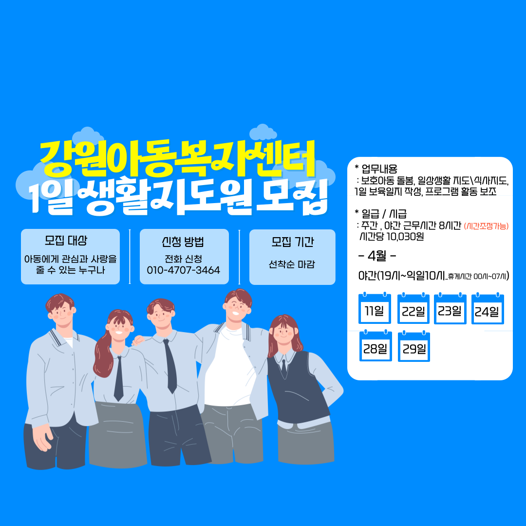 강원아동복지센터 4월 1일생활지도원모집